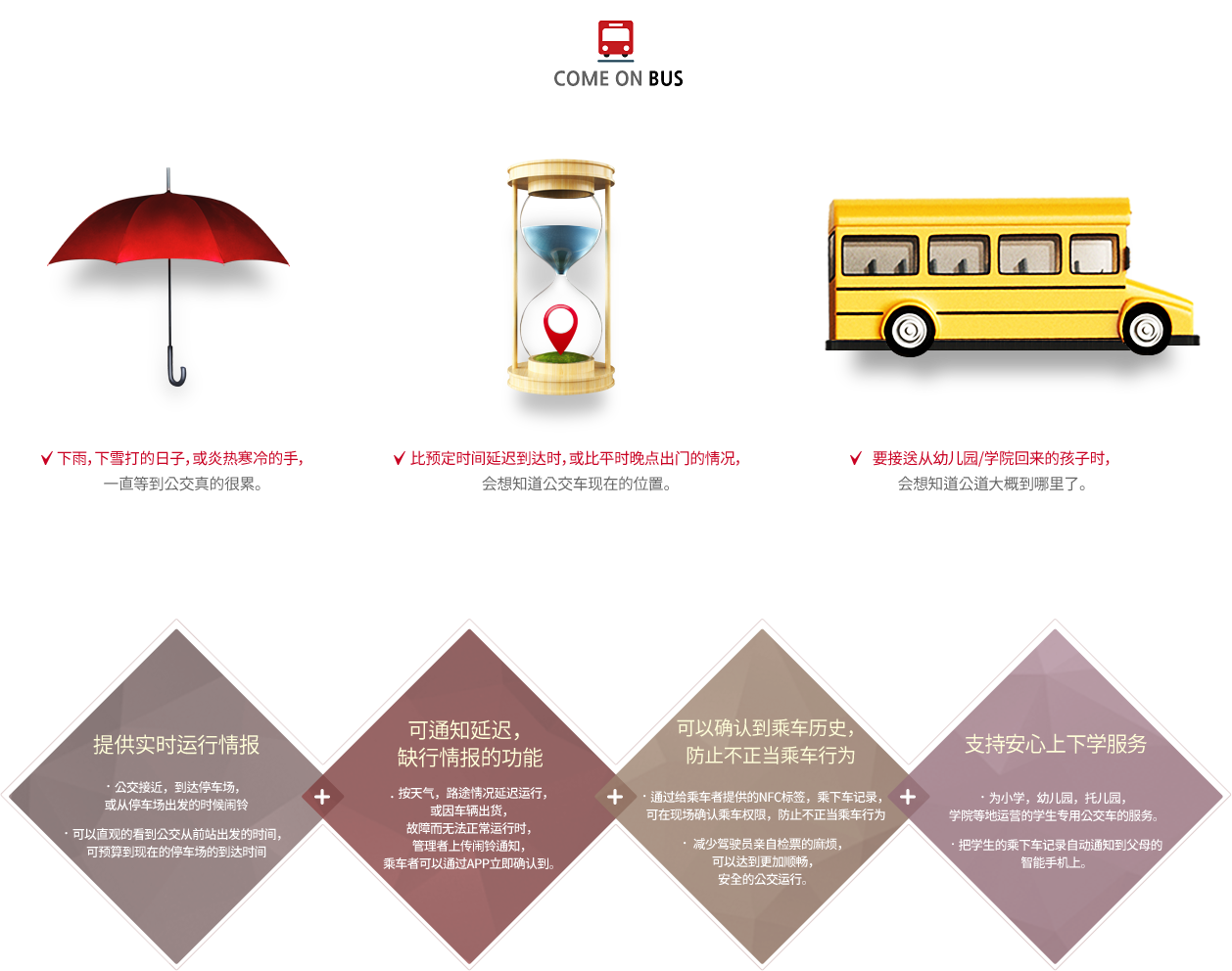 通知公交到达情报的‘公交来了’为了提高公交运营管理,并可以准确节省费用,提供有关手收集/分析道公交运行统计以及乘车人的情报的资料