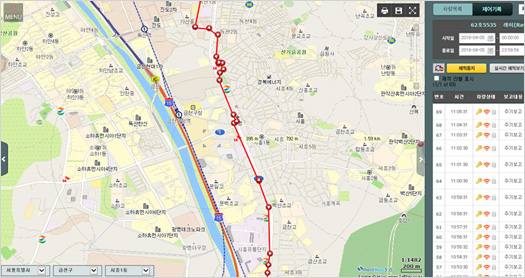 과거 및 실시간 운행 궤적 확인