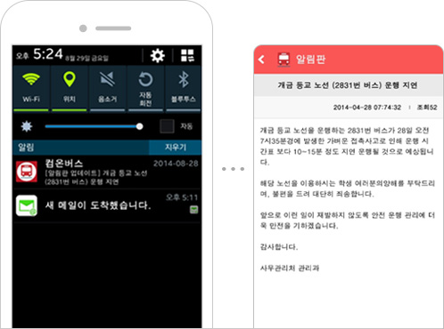알림판 확인(운행 지연 · 결행정보푸시 알람)